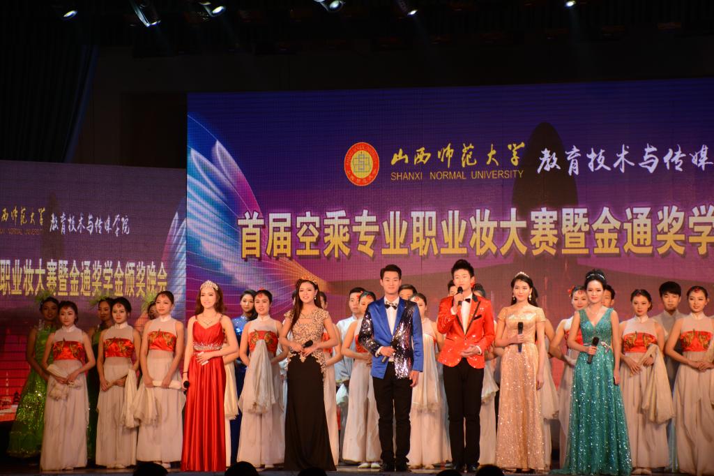 2016年1月5日晚,beat365体育官方网站首届职业妆大赛暨金通奖学金颁奖晚会在文化艺术活动中心圆满落幕。莅临本次晚会的嘉宾有校党委委员、副校长卫建国,副校长薛耀文、郝勇东,北京广慧金通教育科技有限公司董事长焦殿成、副总经理付晓军、梁萍、姜易君,学校有关部门和兄弟学院领导。beat365体育官方网站全体领导和师生员工1500余人也参加了晚会。