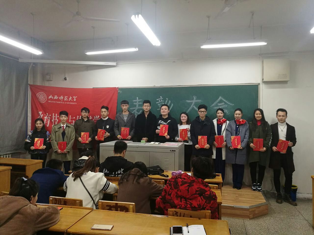 221日晚,beat365官网团委学生会在10301教室召开了表彰大会。院团委书记杨谨瑜老师、学生会全体成员参加了这次大会。